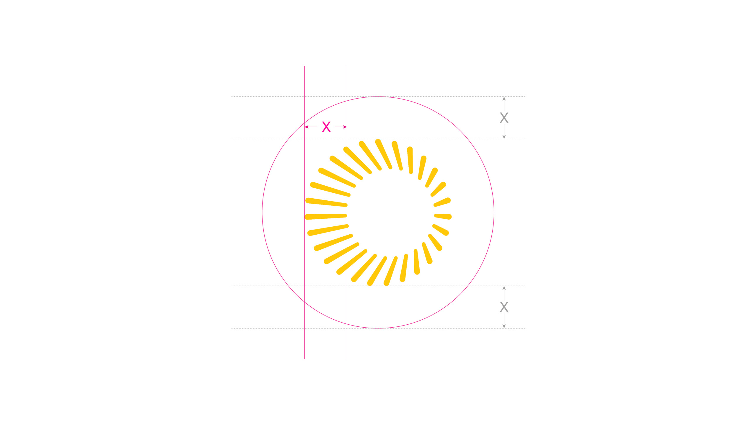 Clear space is for the icon is taken from the thickest point of the icon circle highlighted using X. Use this width – to create the minimum clear space around the icon.