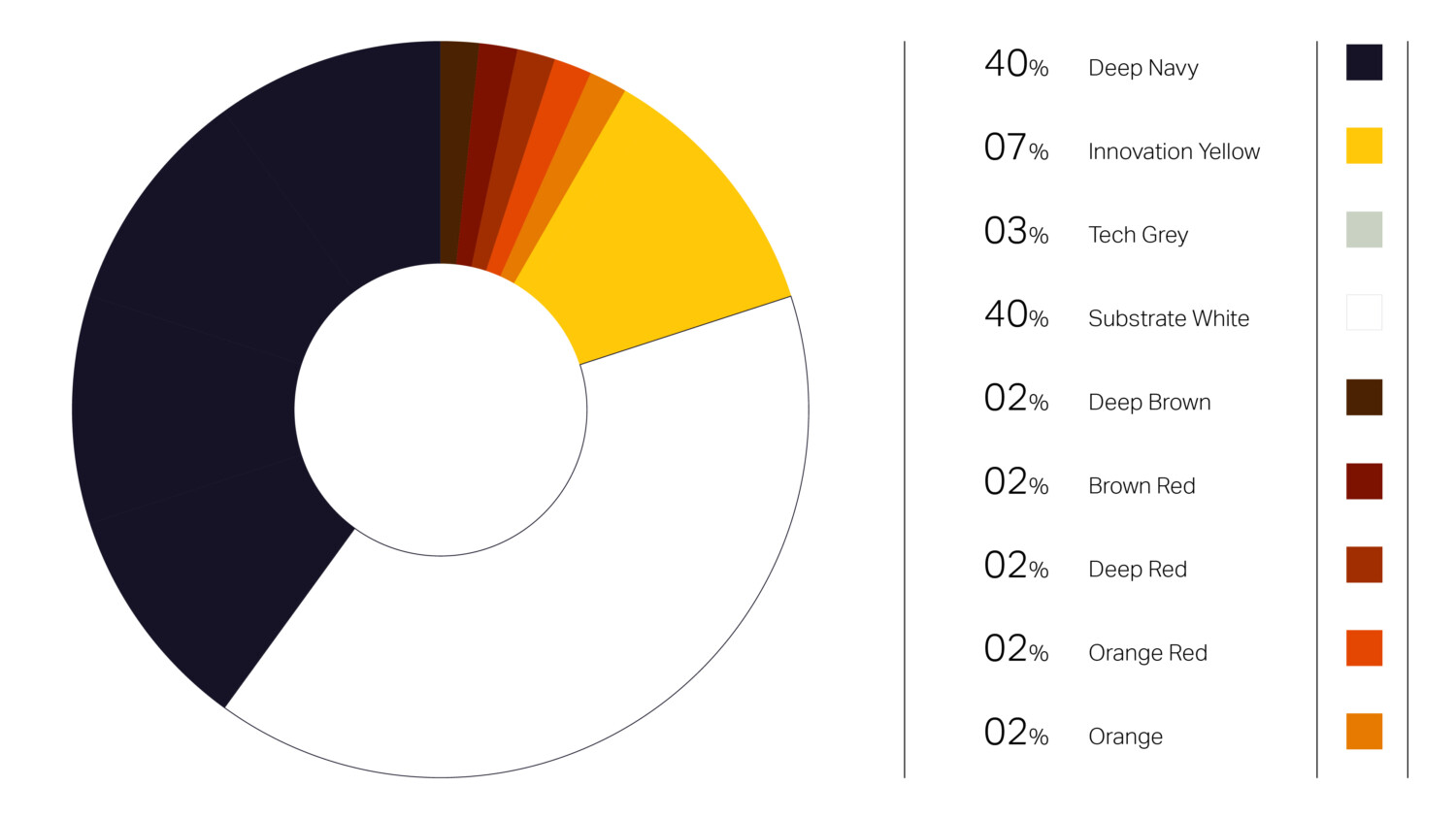 The secondary colours are for highlighting or differentiating of information, such as presentations, information graphics, user interfaces for digital applications.