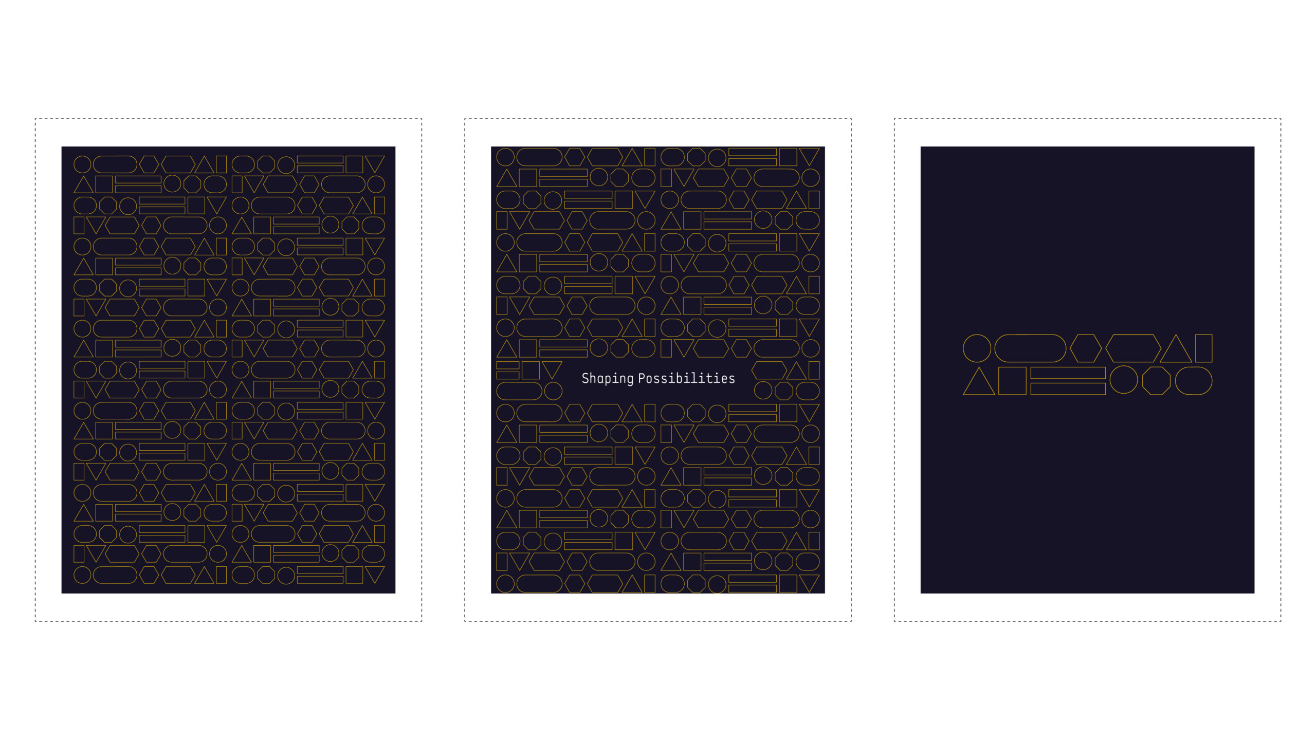 The graphic shapes can be implemented in conjunction with or without typography.